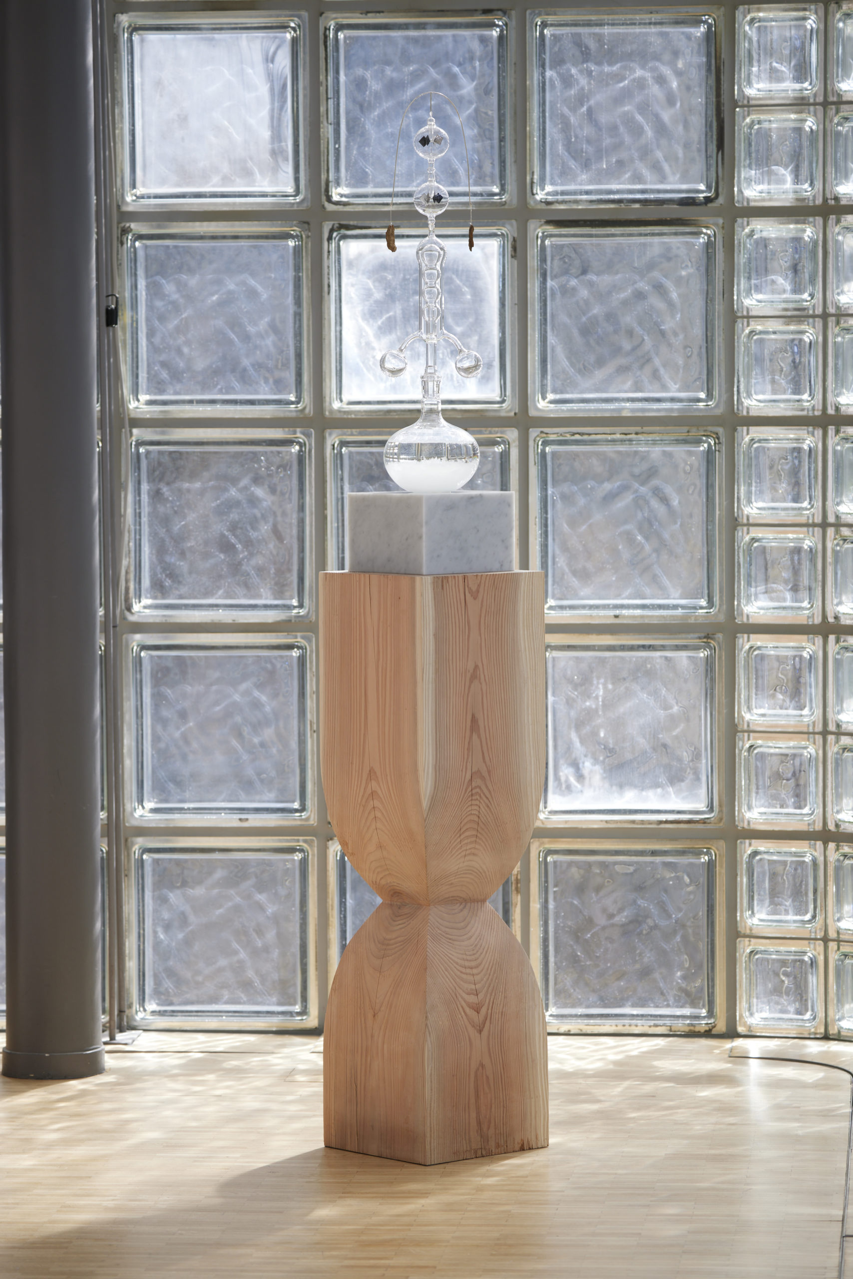 Glacial meltwater, stones collected from Annapurna, crystals distilledfrom camphor tree, ammonium nitrate, potassium chloride, silk thread,marble, Sanbu cedar, glass, silver, iron